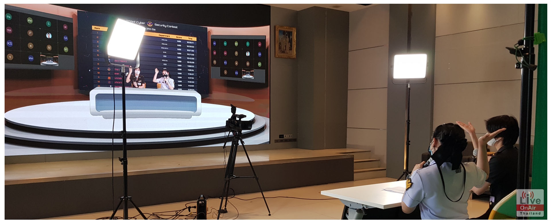 บริการบันทึก หรือถ่ายทอดสด ในรูปแบบสตูดิโอเสมือนจริง สร้างและซ้อนภาพบนฉาก Green Screen เหมาะสำหรับใช้ในงาน อบรม , เสวนาวิชาการ , สื่อการเรียนการสอน , การทำรายการ , งานประชาสัมพันธ์ , เปิดตัวสินค้า พร้อมถ่ายทอดสดไปยังแพลตฟอร์มต่างๆตามต้องการ เช่น Facebook , YouTube , ZOOM , WEBEX , Microsoft Team เหมาะอย่างยิ่งสำหรับ งานที่ต้องมีการสร้างฉาก หรือมีการเปลี่ยนรูปแบบกราฟฟิคบ่อยๆ หรือใช้งานเพียงครั้งเดียว