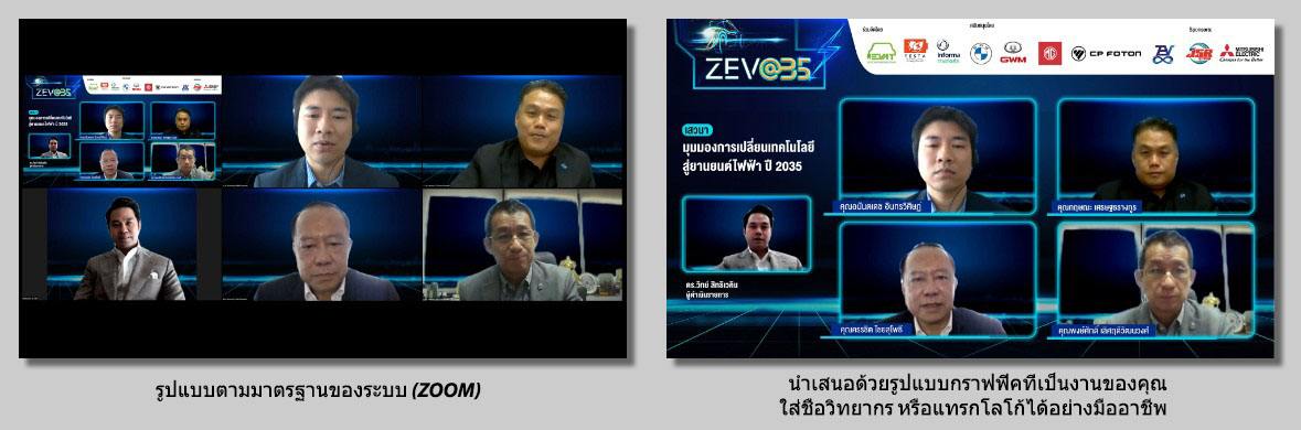 การทำสัมมนาผ่าน Platform Online ทั่วไป จะมีการจำกัดรูปแบบการนำเสนอจาก Platform ต่างๆ เราสามารถปรับรูปแบบการนำเสนอ ทำให้การทำ Webinar ของคุณให้ดูน่าสนใจมากขึ้น น่าจดจำมากขึ้นด้วยเิติมกราฟฟิคที่เราสามารถกำหนดรูปแบบได้ ให้เป็นไปตามรูปแบบของงานที่ออกแบบไว้